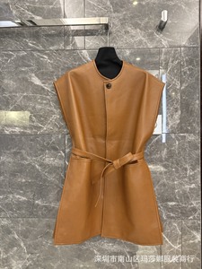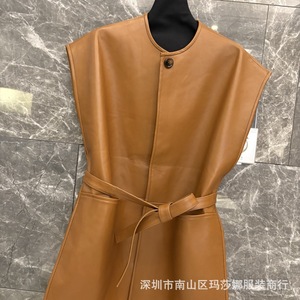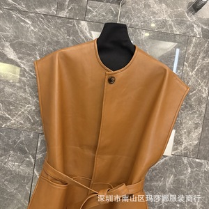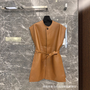 25秋冬真皮皮衣羊皮配腰带亮面韩版宽松中长款马甲外套女皮草