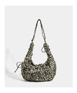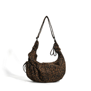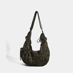 秋冬时尚潮流轻便百搭软帆布慵懒豹纹饺子包大容量休闲单肩斜挎包
