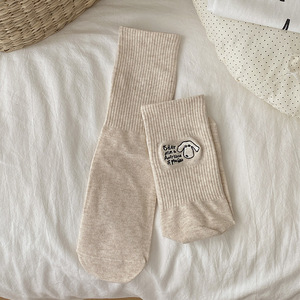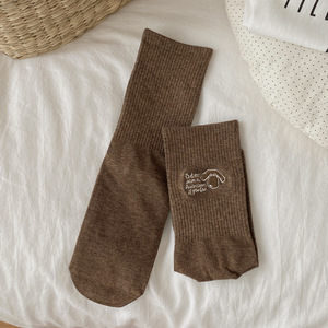 suxinaimin秋冬袜子女刺绣美式小狗ins可爱日系潮运动中筒堆堆袜