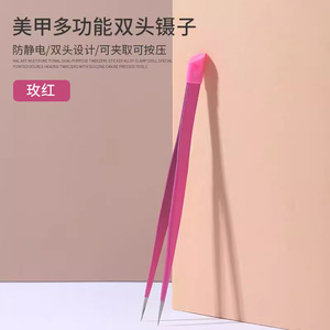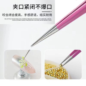 美甲多功能两用镊子贴纸合金夹钻专用尖头双头镊带硅胶可按压工具