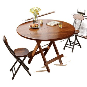 折叠餐桌家用圆桌小户型木桌吃饭餐桌户外多功能便携出租房摆摊桌