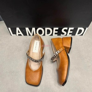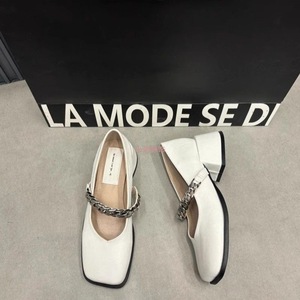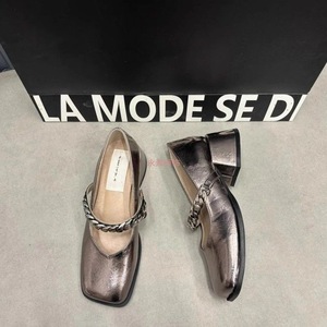 法式新款链条玛丽单鞋鞋子2025新款春秋软底春季粗跟方头裙子皮鞋