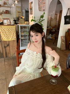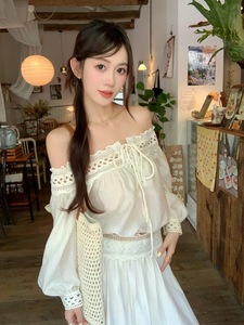 海边度假风一字肩绑带长袖衬衫女装秋季高腰显瘦半身裙法式两件套