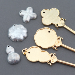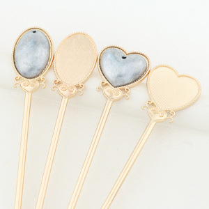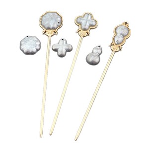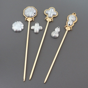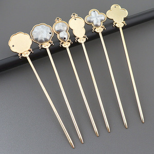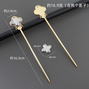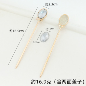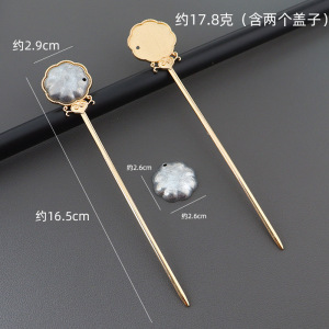 宋锦发簪双面带盖底托diy创意手工KC 金贴皮贴布盘发合金饰品配件