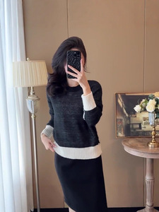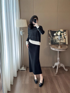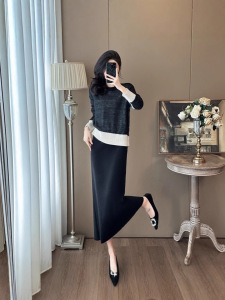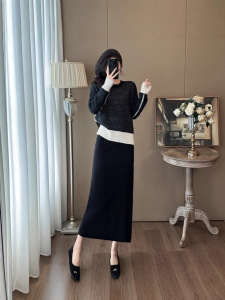 秋冬2025新款小香风时尚撞色针织套装气质显瘦毛衣半身裙两件套女
