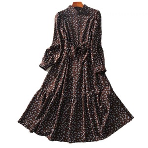 秋日温柔微醺氛围感 边立领系带收腰 碎花连衣裙休闲显瘦小姨长裙