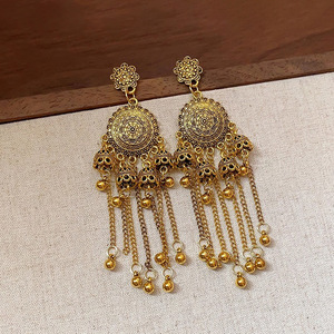 复古宫廷风铃铛流苏耳环小众高级感长款耳钉民族风度假夸张耳饰女