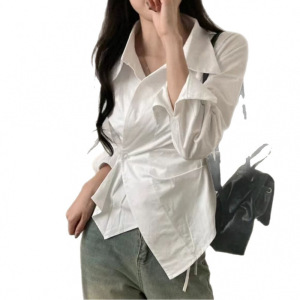 上衣显瘦不规则长袖时髦设计感小众春秋衬衫韩版收腰条纹