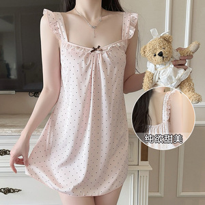 瑰若时尚甜美飞袖深V低胸方领纯欲火辣露背睡裙家居服套装XK5578