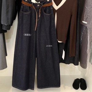 THE LIMON柠檬绿茶2025秋季直筒显瘦丹宁直筒显瘦牛仔裤(配腰带