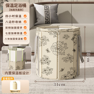 【升级款加高带盖款-牡丹款】SPA温感折叠足浴桶