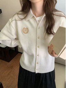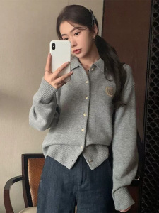 羊绒毛衣外套女25秋冬韩系刺绣POLO领针织开衫学院风慵懒翻领上衣