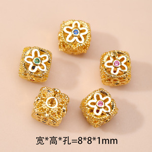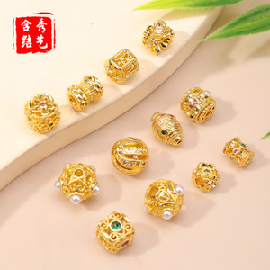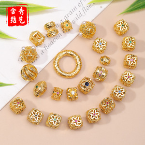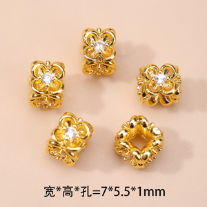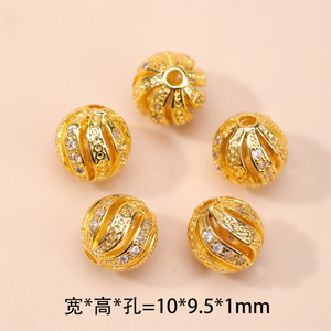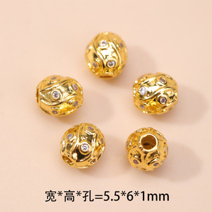 高保色铜镀金镶锆石珍珠跑环隔珠配件 镂空珠手链项链隔珠串珠diy