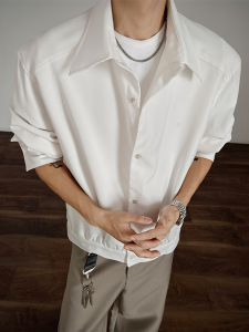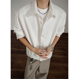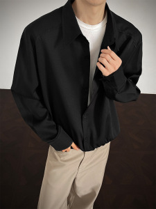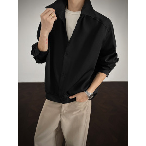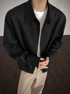 美式老钱风长袖衬衫男款春秋季挺括量感潮流痞帅短款宽松衬衣外套