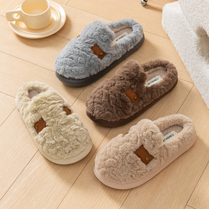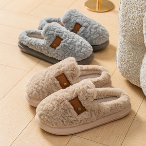 时尚韩系勃肯棉拖鞋女冬季室内防滑厚底加绒保暖不掉毛情侣棉鞋男