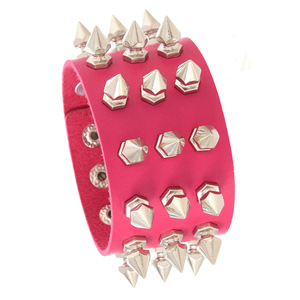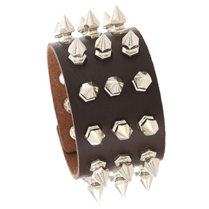 欧美跨境新款朋克风非主流尖铆钉手环哥特式皮质手链男士铆钉手环
