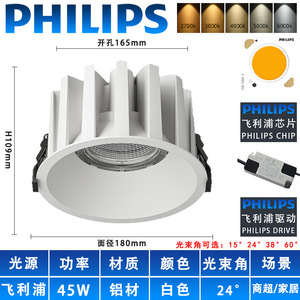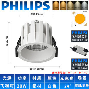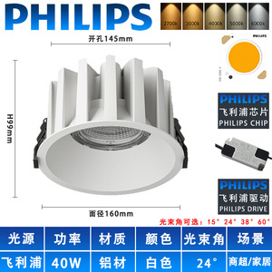开孔200mm防眩光酒店浴室商用led天花灯嵌入式大瓦数防水防雾筒灯
