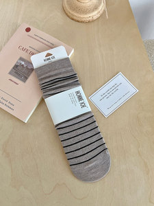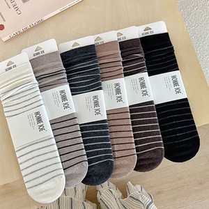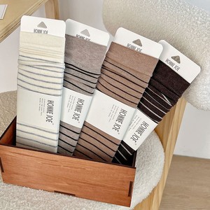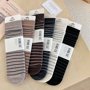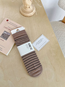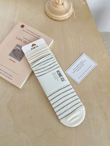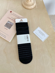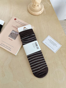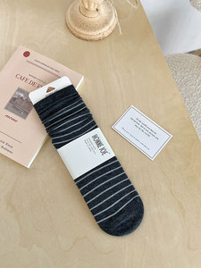 袜子女中筒袜ins潮日系复古条纹保暖羊毛袜秋冬新款学院风堆堆袜