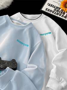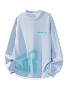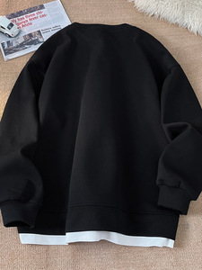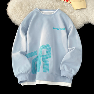 美式高街复古假两件圆领卫衣男春秋季百搭宽松休闲打底衫长袖上衣