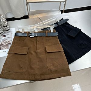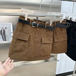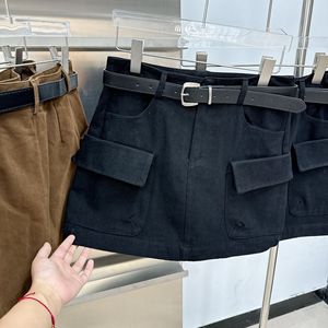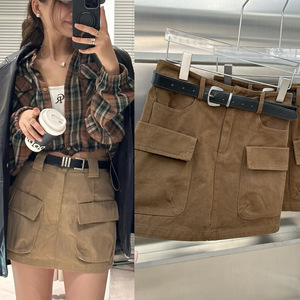 设计感工装口袋短裙秋季新款高腰A字裙气质百搭休闲半身裙配腰带
