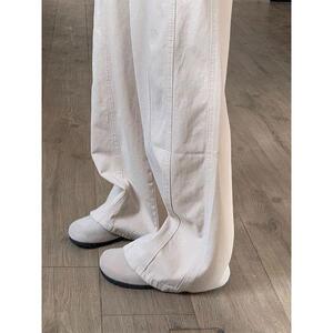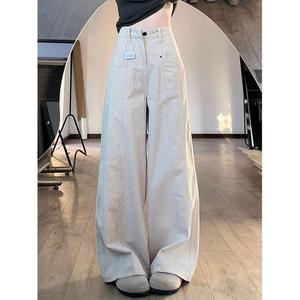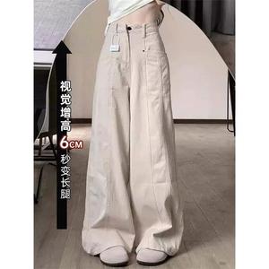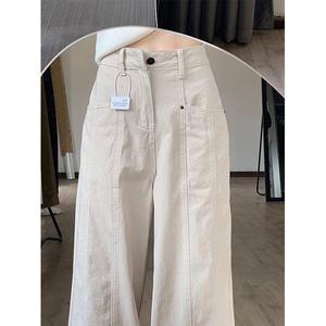 小个子米杏色美式复古休闲工装牛仔裤女高腰宽松显瘦直筒阔腿长裤
