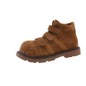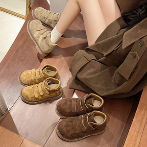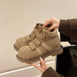 欧货磨砂皮高帮厚底鞋女卡皮巴拉松糕鞋2025秋季新款小个子增高鞋