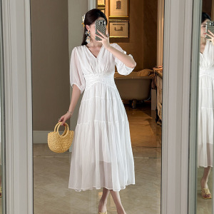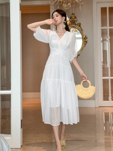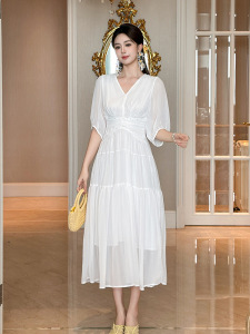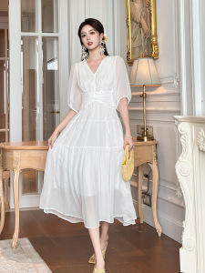 精致飘逸垂坠感仙女气质雪纺连衣裙秋季茶歇法式初恋长裙45225