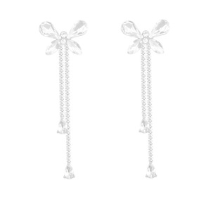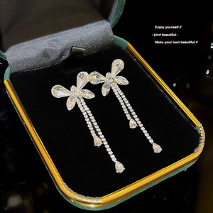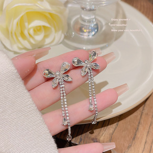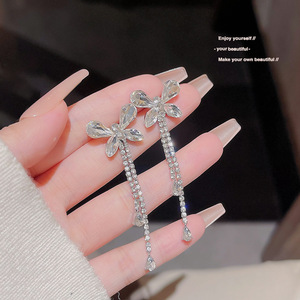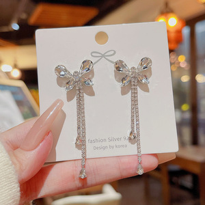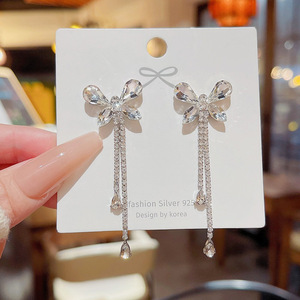 925银针高级感蝴蝶结耳环小众轻奢长款满钻耳钉气质优雅流苏耳环