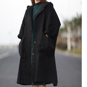 意大利休闲尾单剪标女装休闲连帽风衣外套宽松显瘦中长款大衣