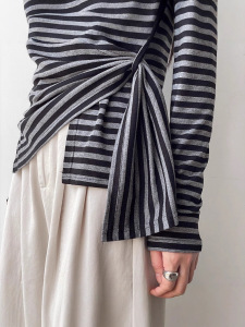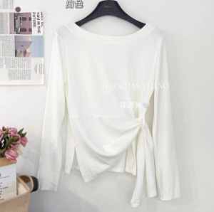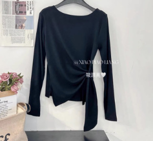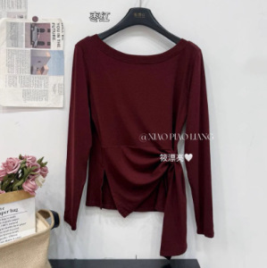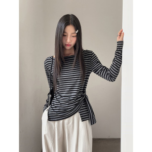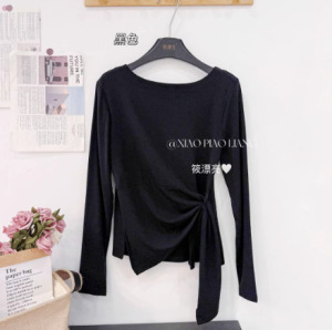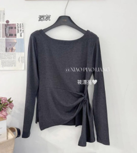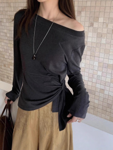韩系设计感一字肩长袖T恤女2025早秋新款修身显瘦百搭上衣女