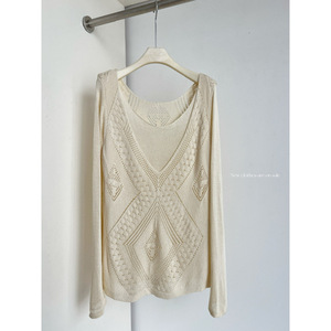 2025秋季新款假两件镂空针织衫女设计感小众宽松慵懒风上衣