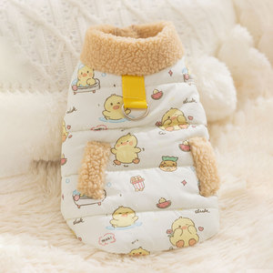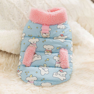 秋冬季加厚保暖撞色高领狗狗衣服卡通印花牵引马甲小型犬宠物服饰