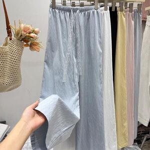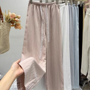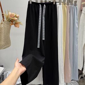 蕾丝抽绳阔腿裤女夏秋季新款松紧腰垂感宽松休闲直筒长裤薄款跨境
