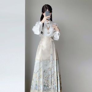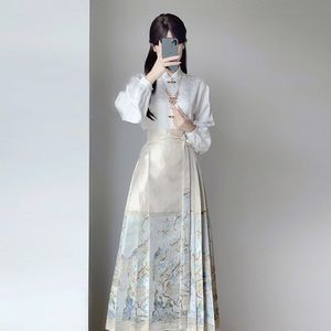 新中式织金马面裙套装女春季款日常国风明制汉服2025新款白色
