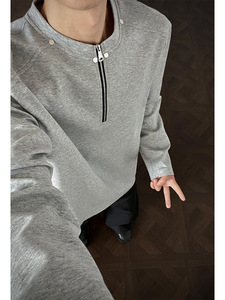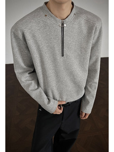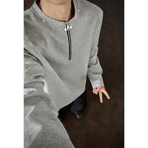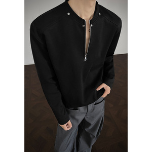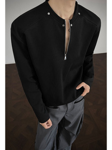 美式高街曼巴棉半拉链长袖t恤男春秋cleanfit高级感痞帅铆钉重磅