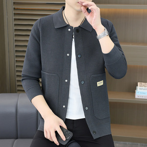 毛衣外套男秋季2025新款翻领针织夹克带口袋高级感格纹线衣披风