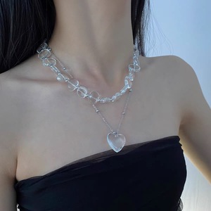 透明琉璃水晶爱心坠项链女轻奢小众高级感双层叠带choker锁骨链