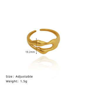 跨境钛钢饰品冷淡风戒指不规则镂空镀18k金保色开口戒配饰女JZ083