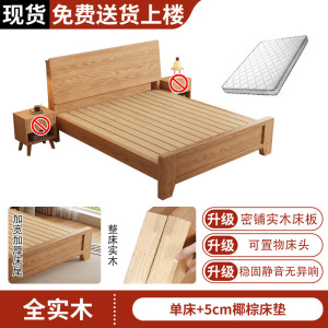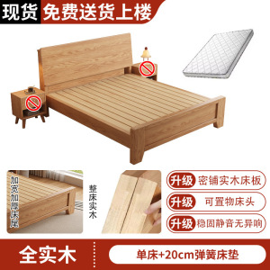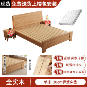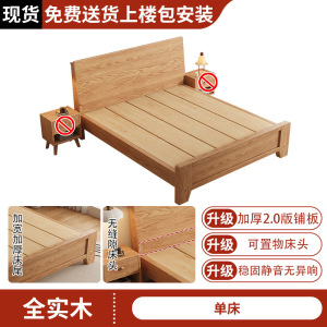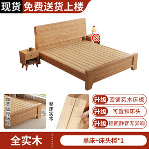 全实木床1米8双人床排骨架主卧家用床架橡木床出租房用1.5m单人床