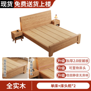 【加宽加厚床板】斜靠橡木床+床头柜*2【免费上楼】