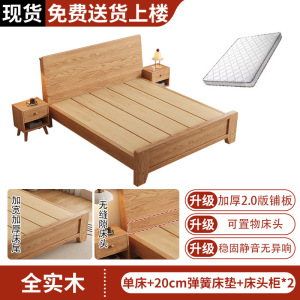 斜靠橡木床+20cm弹簧床垫+床头柜*2【免费上楼】