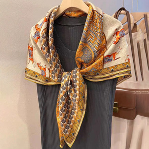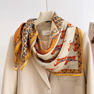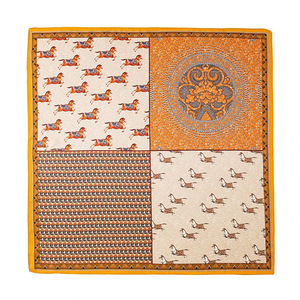 100%桑蚕丝90真丝斜纹绸四格骏马大方巾女士春夏季轻奢送礼物丝巾