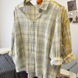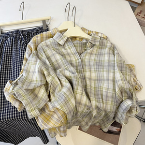 “海盐气泡”夏日轻薄透气超软糯棉纱宽松显瘦格子防晒衬衫七分袖
