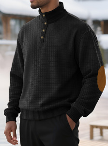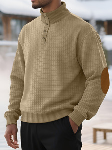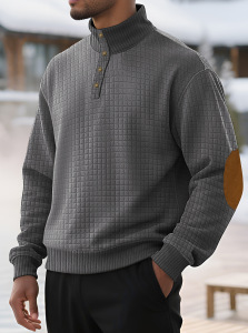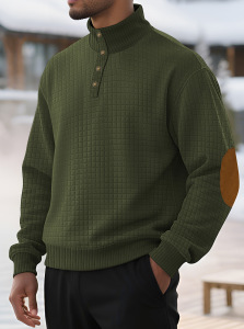 2025跨境秋新款欧码男士提花立领小方格卫衣针织套头休闲亨利卫衣