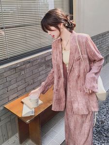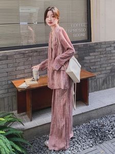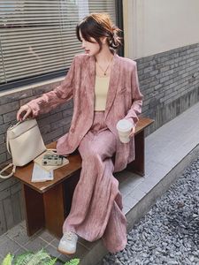 2025春秋季新款韩版气质通勤扎染设计感西装外套阔腿裤时尚套装女