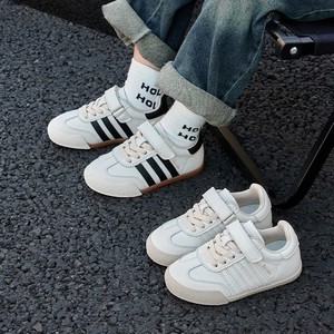 女童黑白真皮德训鞋2025春秋款童鞋男童软底运动鞋儿童百搭小白鞋