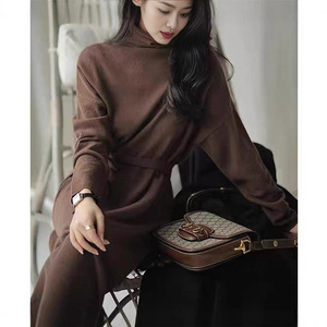 欧洲站秋季2025新款女装法式赫本风长款毛衣裙内搭打底针织连衣裙