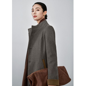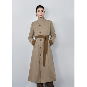 英伦风复古立领长袖中长时尚大衣女2025秋冬新款收腰显瘦毛呢外套