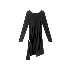 ELSISSI2025秋季一字领绑带长袖t恤女不规则开叉收腰修身纯色上衣