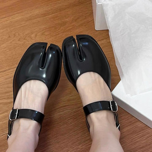 羊皮版~2025新款猪蹄鞋分趾鞋一字带浅口单鞋玛丽珍乐福鞋女厚底